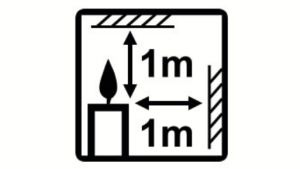 Należy utrzymywać minimalny dystans 1m obok i 1m poniżej przedmiotów, które mogą się zapalić.